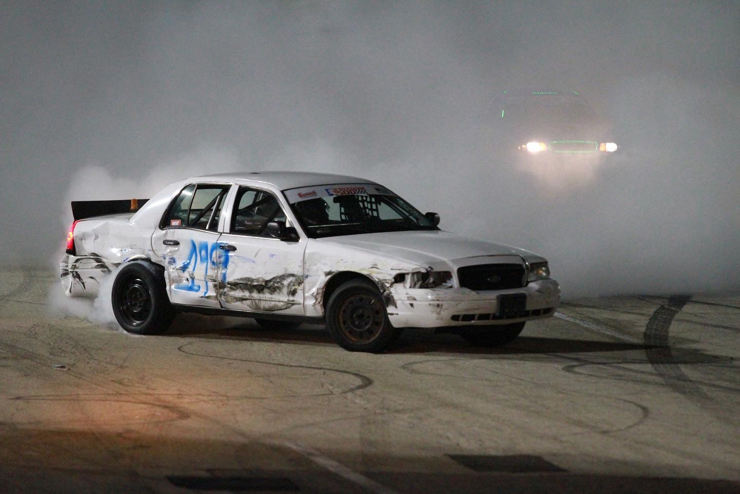 Put such names as Vaughn Gittin Jr from formula drift and freestyle motorcross legends Travis Prastrana along with skateboarding legend Bucky Lasek and put them in crown vics and let them compete in a fun racing style inside the freedom factory roundy round track.